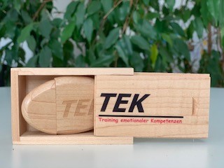 Obwohl im Bereich „Materialien“ die TEK-Audio-Dateien herunterladbar sind, erhalten wir viele Anfragen nach Möglichkeiten, den Kursteilnehmern das Audio-Training in gegenständlicher Form an die Hand geben zu können. Wir haben diese Anfragen in den letzten Jahren mit den sog. „TEK-CDs“ bedient, mussten aber mittlerweile feststellen, das immer weniger Personen einen CD-Spieler nutzen/besitzen. Vor diesem Hintergrund bieten wir neben der „TEK-App“ den sog. „TEK-Stick“ an, welcher die Audio-Dateien enthält. Wenn Sie als TEK-Trainerin oder Trainier ihren Kursteilnehmern die TEK-Audio-Übungen in gegenständlicher Form übergeben sich aber die Mühe sparen möchten, die Audio-Dateien selbst auf Speicherstifte zu ziehen, können Sie hier bei uns TEK-Sticks bestellen.